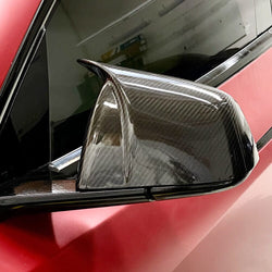 - Real Molded Gloss Carbon Fiber BMW M Performance Style Side Mirror Overlay Covers Set for Tesla Model 3 Highland 2023-2026