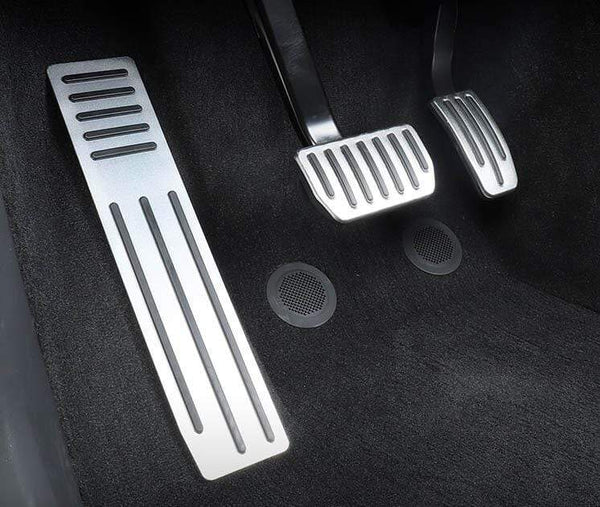 The performance pedal pads snap into place over the existing pedals to offer a sporty and luxury vibe to your Tesla