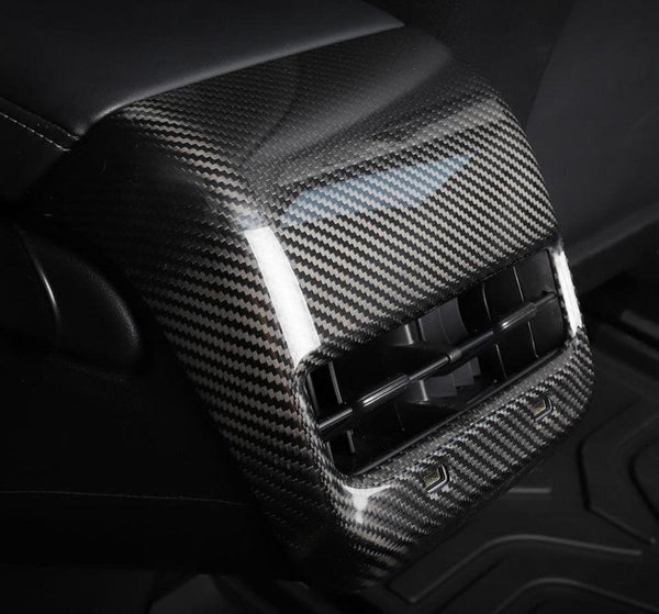 For ultimate quality and an overall superior aesthetic, the Real Molded Gloss Carbon Fiber Rear Backseat Vent Overlay Cover for Tesla Model 3 2017-2023 is your ultimate choice. SECURE YOURS NOW!