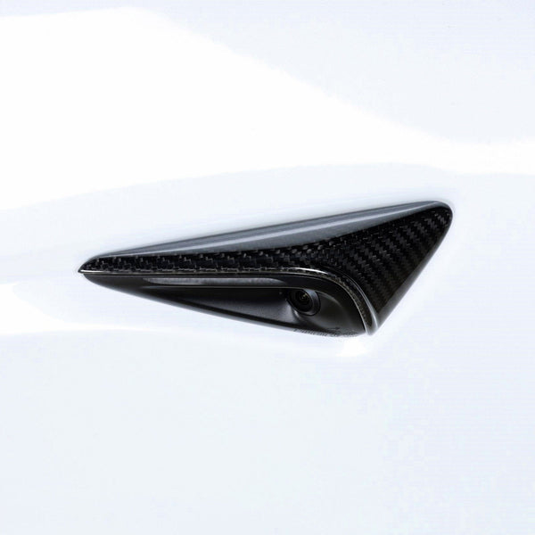 Real Molded Gloss Carbon Fiber Side Marker Turn Signal Overlay Half Covers for Tesla Model Y Juniper