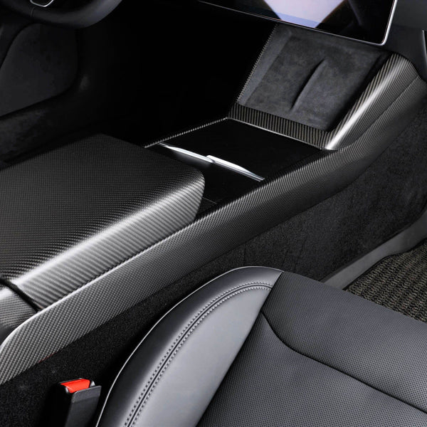 Real Molded Matte Carbon Fiber Center Console Full Coverage Overlay For Tesla Model Y Juniper